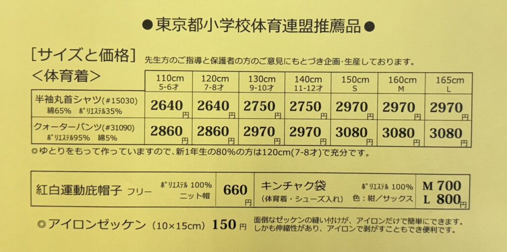 目黒区立第10中学校指定の体操着、上履き、水着も取り扱っております。
